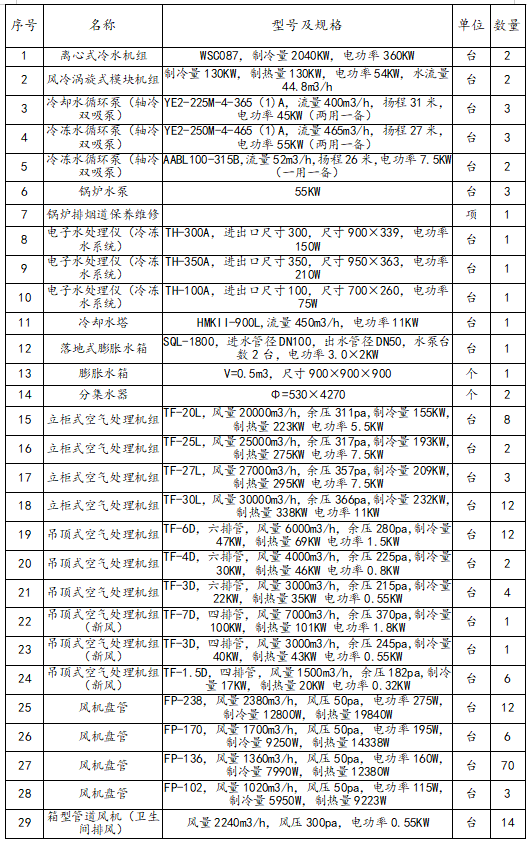 湖北工业大学图书馆中央空调主要包含麦克维尔离心式冷水机组系列组件、风冷涡旋式模块机组系列组件,设备清单如下: