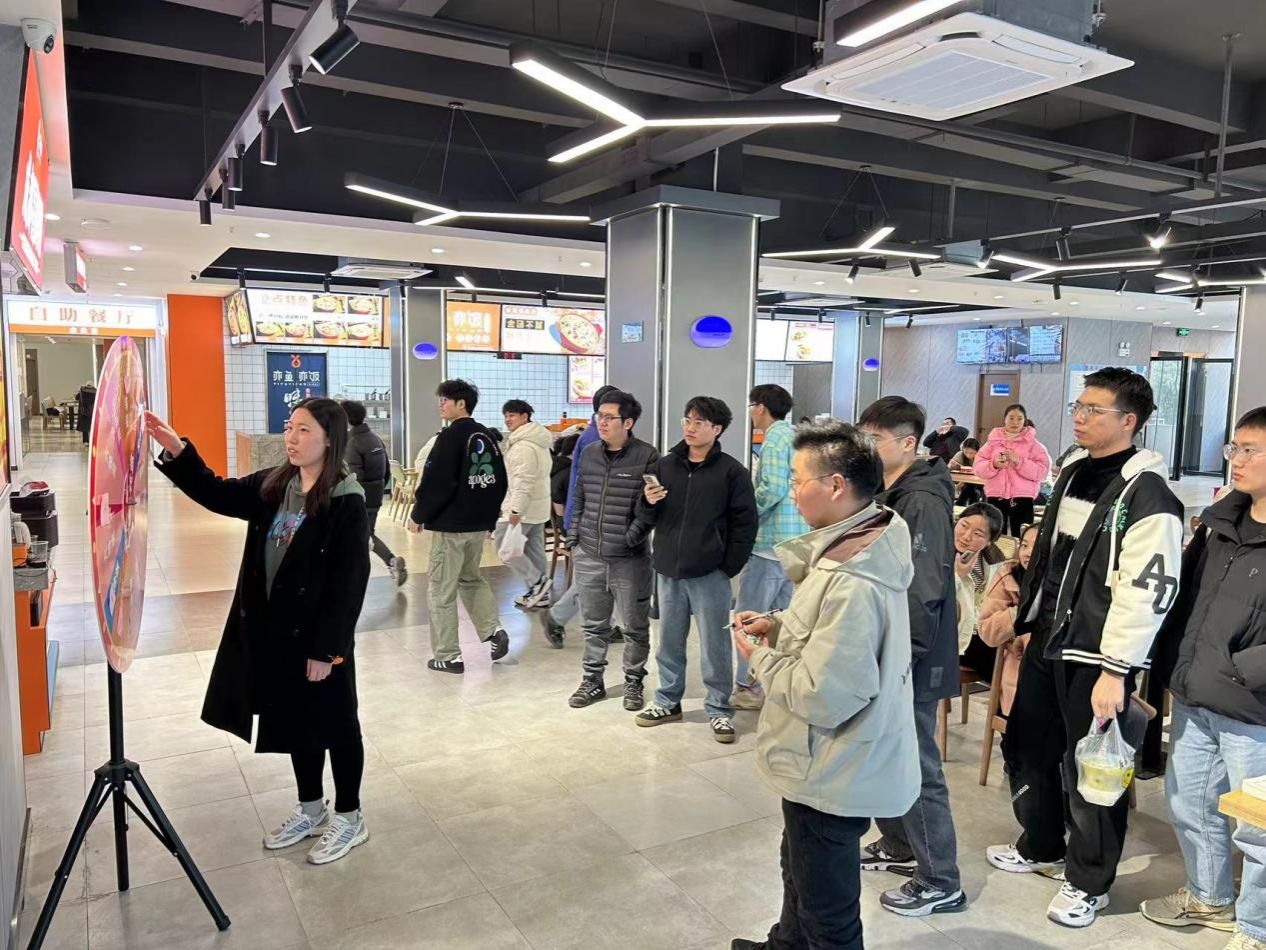 2024年3月4日-8日,楚风苑食堂举办了“魅力女神节”为主题的庆祝活动。食堂二楼大厅幸运大转盘深受大家欢迎,活动现场洋溢着欢乐的气息,加油助威声此起彼伏,一个经济管理管学院的女同学站在大转盘前,搓了搓手,然后用力地转动了幸运大转盘,大家的目光就随着这个转盘一圈、两圈、三圈……目不转睛地盯着,生怕错过了揭晓结果的那一刻,转盘刚停止,“哇,中了特等奖!”现场围观同学们兴奋地齐声叫起来,似乎自己获了奖一般,跟着欢呼、拍手,喜悦的心情写在每个人的脸上。国际学院非洲女学生转到了一份免费的“霸王餐”,高兴的举着奖卷说:“今天收到了一个很特别的节日礼物,深切感受到学校的关心和关爱”。