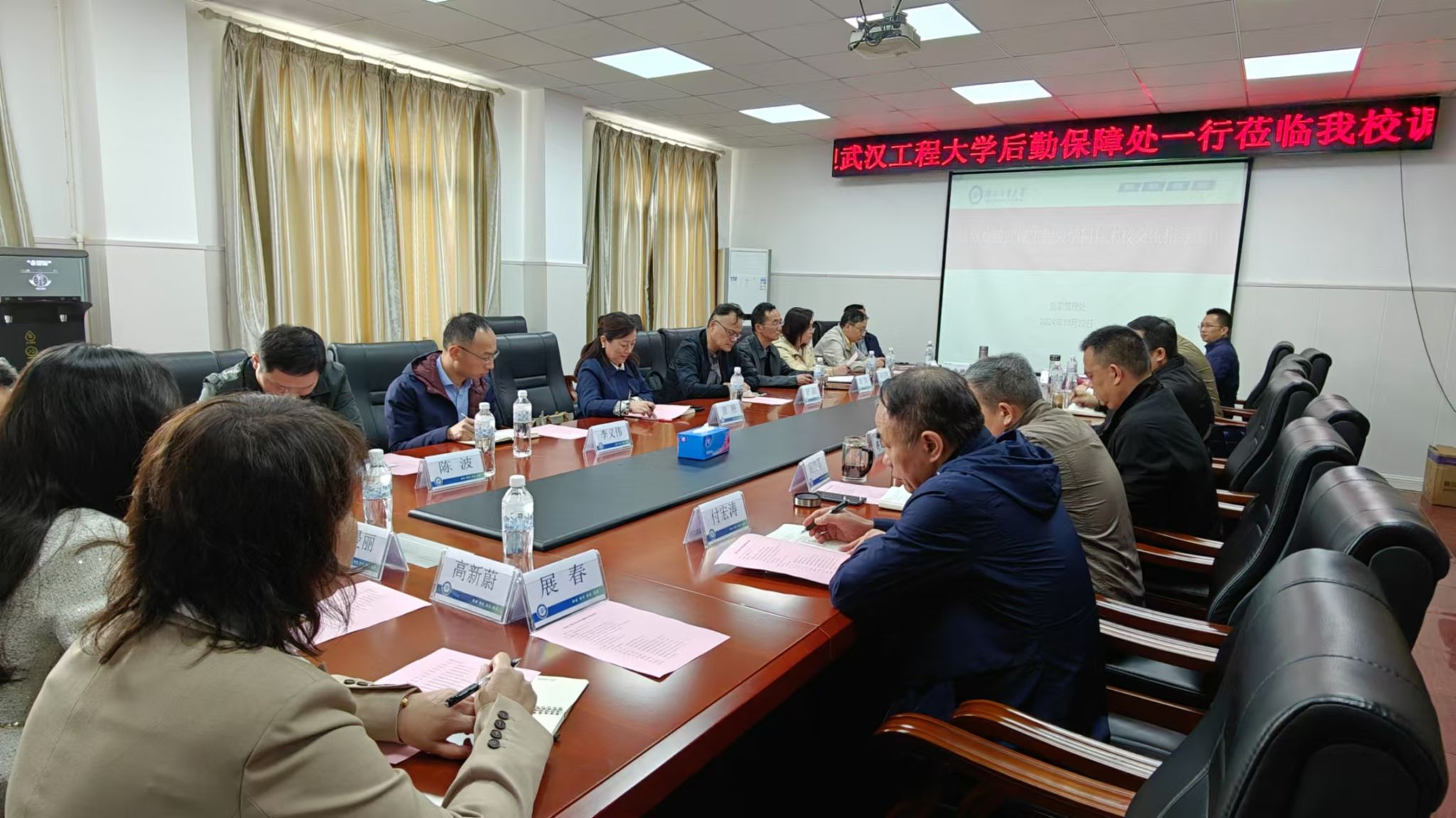10月20日下午,武汉工程大学后勤保障处一行11人莅临我校调研后勤物业、水电、绿化、幼教、饮食等方面的工作,后勤管理处领导班子成员及各有关科室负责同志参加。
