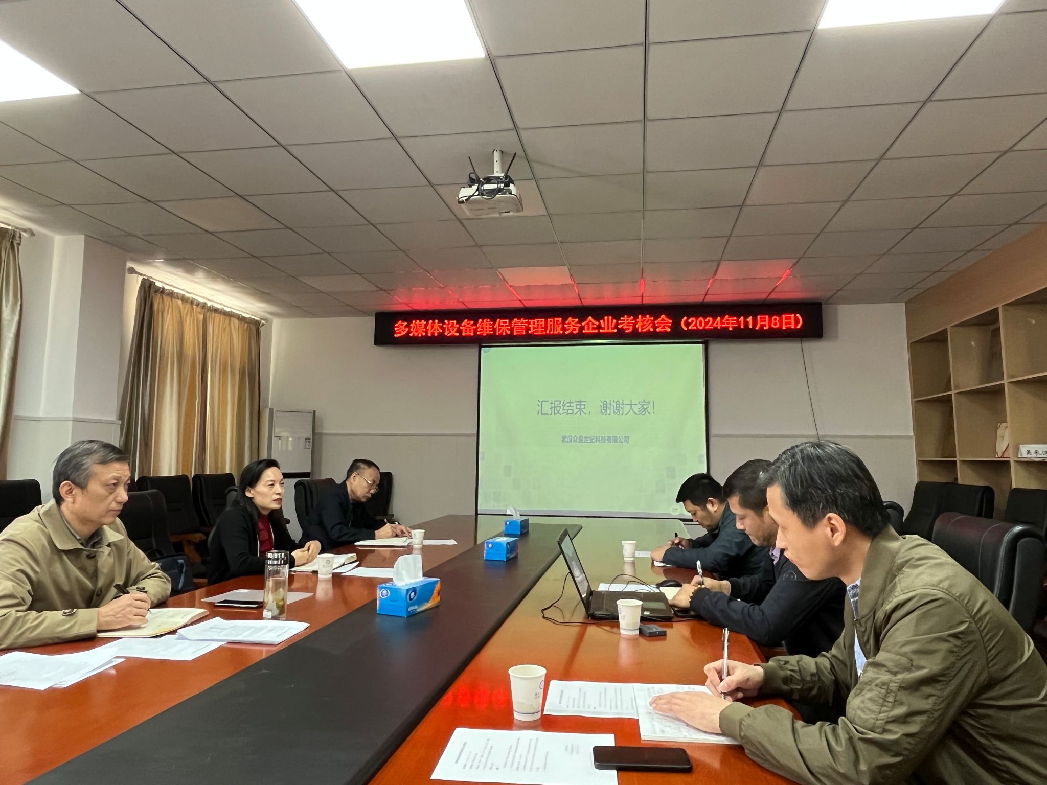 11月8日上午,后勤管理处召开多媒体设备维保管理服务企业考核会,后勤管理处副处长杨华丽、目标管理办公室主任付宏涛、物业管理与服务中心负责同志、相关工作人员、武汉众盈世纪科技有限公司驻校项目负责人陶勇参加考核会,会议由物业管理与服务中心主任陈安主持。