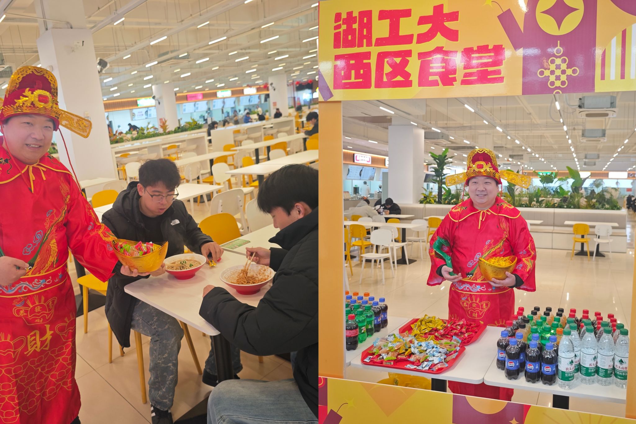 新学期,新气象,各食堂以喜庆欢乐的活动,为广大师生带来满满惊喜。西苑食堂开学第一餐,“财神爷”惊喜现身,为师生们送上甜蜜糖果与清凉饮料,喜庆的装扮和亲切互动,让食堂洋溢着欢乐氛围,师生们纷纷上前合影留念。