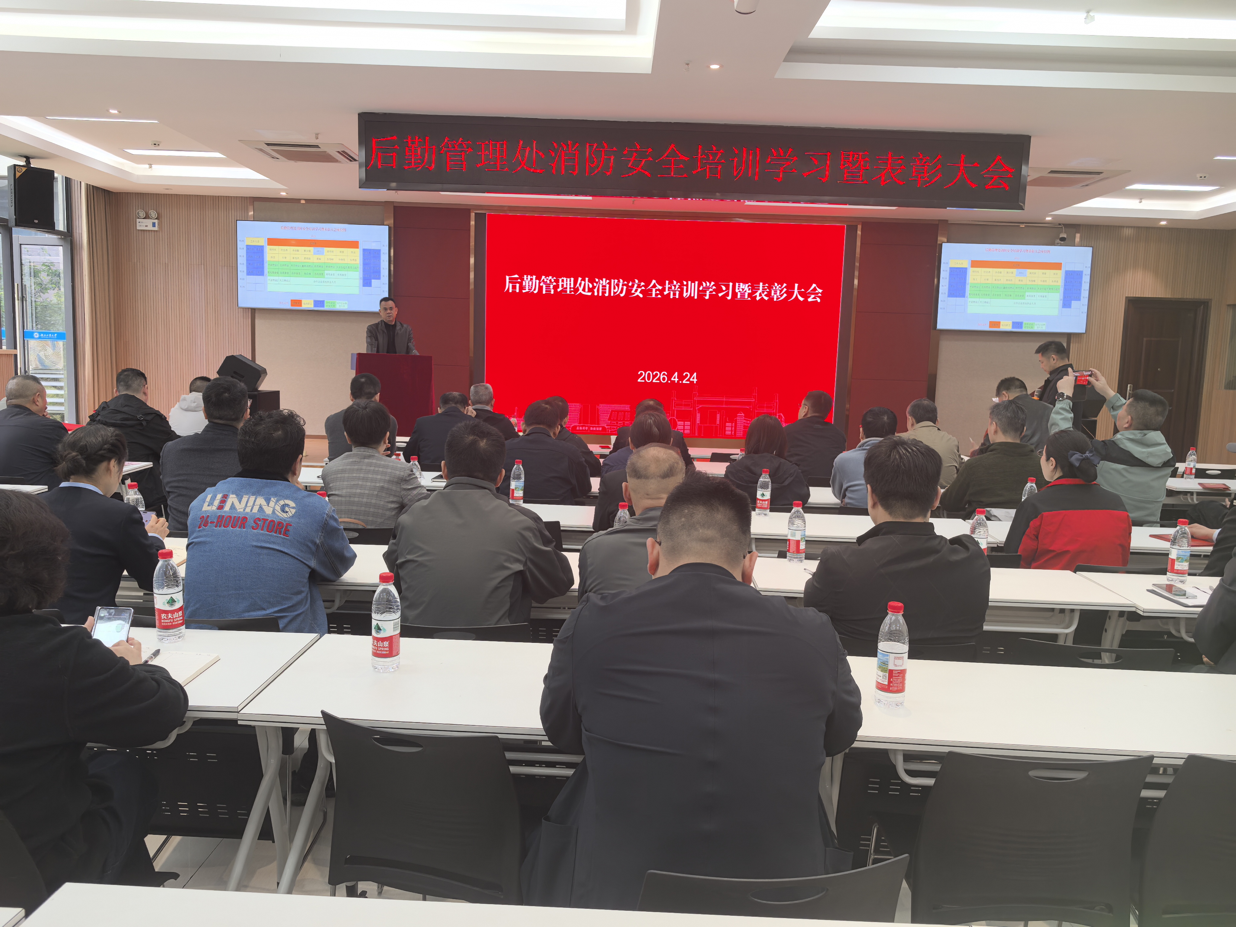 4月24日上午,后勤管理处消防安全培训学习暨表彰大会在教七一楼会议室召开。后勤管理处副处长吴长江主持会议,后勤管理处班子成员、各科室(中心)负责人、各党支部书记、各委托服务企业负责人及受表彰的“消防卫士”参加会议。